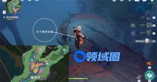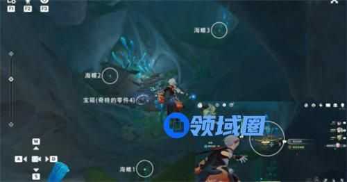 3、传送海沫村东北方向地下锚点,前往玛梅赫家水下;按图中指引,收集3个海螺,清理机关,打开宝箱,获得一个零件。