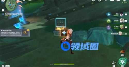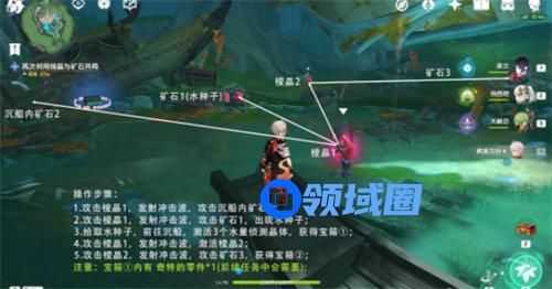 4、传送海沫村东北方向地下锚点,前往「寂寞的地方」;往地图的西北方向走,前往图中指引棱晶,然后根据图中的指引操作棱晶,开启宝箱后获得一个零件。