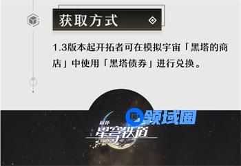 1.3版本起开拓者可在模拟宇宙「黑塔的商店」中使用「黑塔债券」进行兑换。