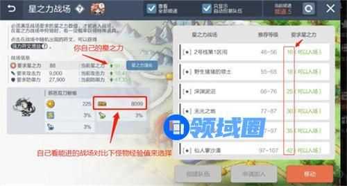 5、星力战场是我们最主要的升级系统,根据自身装备的星力数量总和解锁相对应星力的地图,星力越高,进入对应的星力地图经验也越高;