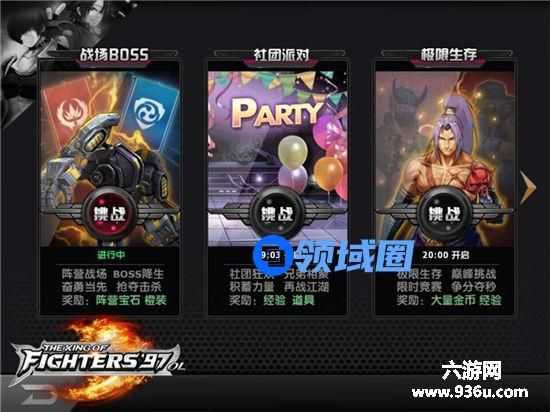活动广场是《拳皇97OL》玩家们充盈荷包、增长经验的绝佳场所。这里有三大特色副本,分别产出经验、金币、以及钻石。每种副本每天可刷三次,而且难度并不算大。建议大家去挑战高阶的关卡,奖励会更加丰厚。