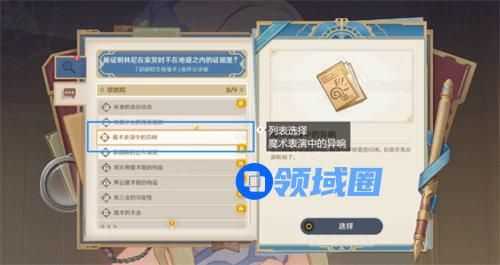 首先选『海尔希溶解』(两点钟位置),选择『魔术表演中的异响』驳斥
