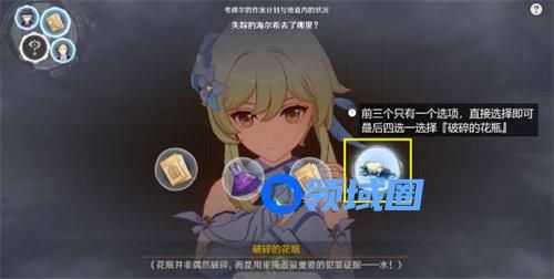 前三个只有一个选项,直接选择即可,最后四选一选择『破碎的花瓶』(右起第一个)。如下图。