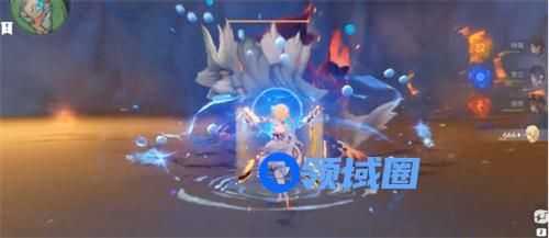 2、首先我们可以将BOSS的火盾打到剩一点点血,但是不要击破,然后等它陷入地里的使用使用水元素击破护盾就可以了;