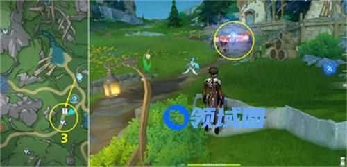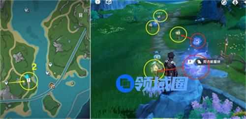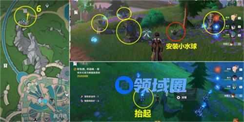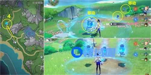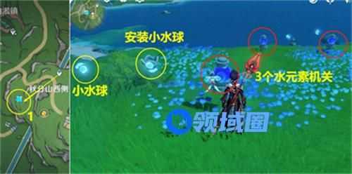 1.第一处:位于【秋风山西侧】,将附近三个水球拾取后放置激活水圈,将水圈携带激活剩余两个水元素机关解密获取宝箱;