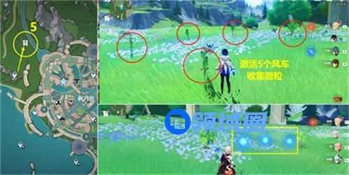 5.第五处:位于【枫丹延】,使用风元素角色将五个风车激活,出现微粒收集任务即可开启任务;
