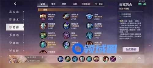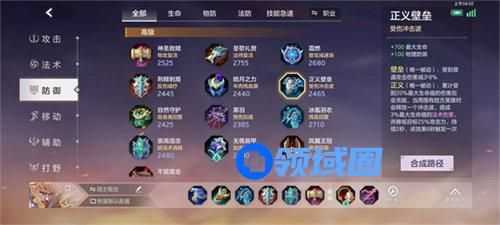 正义壁垒,射手克星甲降低群体输出冲阵的不二之选在对面没有高回复的情况下,也是用来顶反甲的。