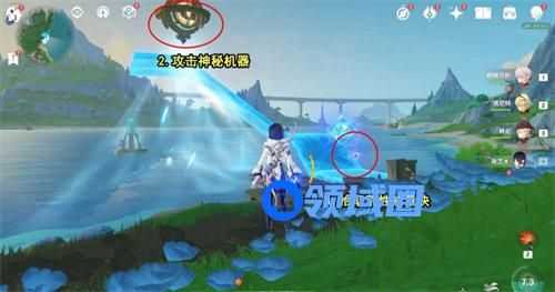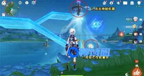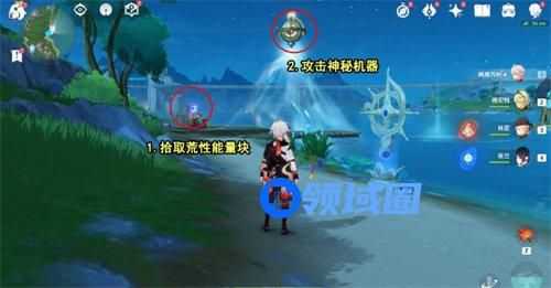 2、到达之后拾取荒性能量块攻击神秘机器并将出现的敌人消灭掉;