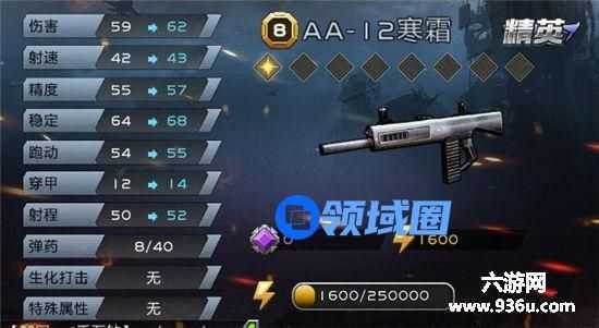 目前市面上有2把aa12,一把是幽魂aa12,一把是普通aa12,那么这两把究竟拿把好呢?小编可以很复制的告诉你,aa12是一把很神奇很神奇的枪,其他枪都看伤害射速的,而aa12是唯一一把全看子弹来强化的枪,先放上2张8级aa12的属性图。