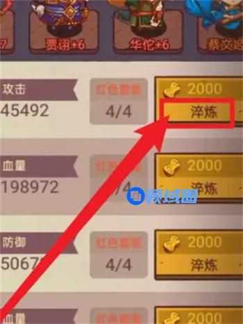 3、在吕布的装备详情界面,我们点击装备右侧的淬炼就可以投入材料为装备淬炼。