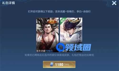 【天下无双皮肤礼包】包含了宫本武藏的惊梅引和李白的诗剑行,售价2360点券