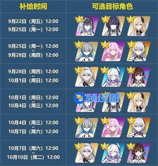 本次自选扩充补给分为六期,舰长可以根据自身需要,每期任选一位S级女武神作为当期UP目标。