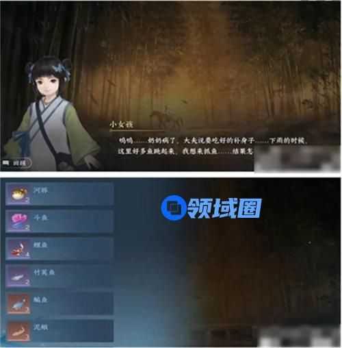 3.和小女子对话,把小女子需要的鱼提供给他。