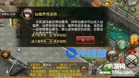 魔界的出装备都是令许多玩家趋之若鹜的极品,随着每层的怪越来越厉害,爆出的装备也越来越让人垂涎。但是由于怪物十分强力,建议几个人组队去打,另外如果想深入魔界还需元宝进行传送。