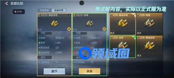 属性上,这款CZ75-黄金穷奇相较于非油炸版本的CZ75-穷奇提升了其性能。满精通状态下,CZ75-黄金穷奇的换弹速度为1.9秒,快于普通CZ75-穷奇的1.99秒,CZ75-黄金穷奇的切枪速度为0.85秒,快于普通CZ75-穷奇的0.87秒,在战斗中先发制人,快人一步!