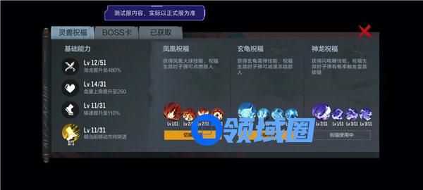 首先为大家介绍一下山海经世界中的技能成长体系。山海经世界内共分为4大领地,每个领地中又有不同的攻击区域,攻击区域共分为低、中、高三种。在不同区域内击败怪物可以获得不同的灵兽祝福。祝福共分为四种,分别是:麒麟、凤凰、玄龟、神龙。