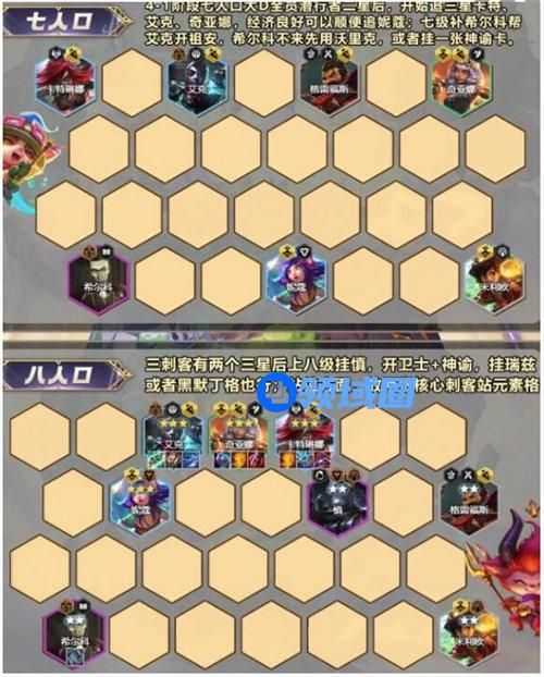 二、羁绊:4潜行者、3以绪塔尔、2卫士、2祖安、2神谕