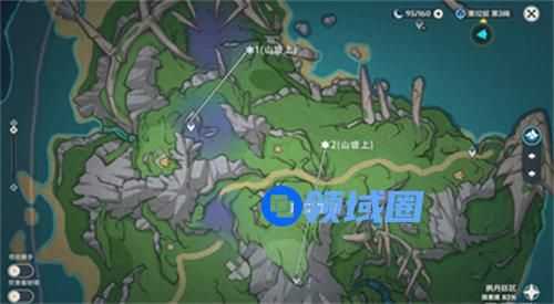 1、首先我们要先去枫丹廷地区的苍晶区,也就是标注的2号地点。