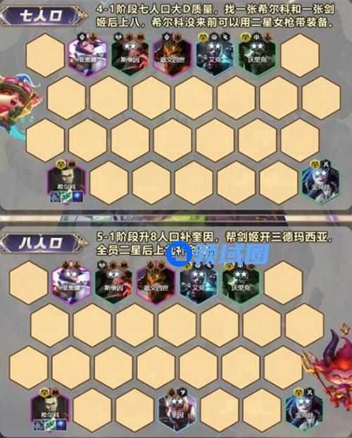 5、5-1升八找二星希尔科和二星剑姬,上九找剑魔,有祖安转八级开六祖安,剑魔没来先用狗头。