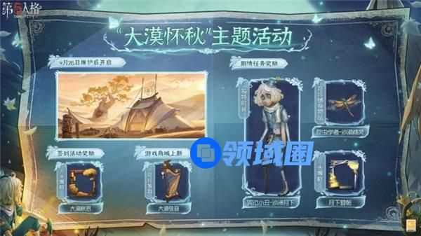 第五人格是一款非常火爆的非对称竞技手游,这款游戏由网易出品,采用了独特的哥特恐怖式画风打造,高品质的3D模型,丰富的养成场景带给玩家更加优质的游戏体验,游戏中玩家可以自由选择求生者或监管者阵营来进行游戏,每个阵营都有非常丰富的角色等你来选择,不同的角色拥有不同的技能特色,带给玩家更加丰富的游戏体验,游戏中还有非常丰富的个性化装扮等你来获取,带给玩家更丰富的游戏体验,有的玩家还不太了解第五人格大漠怀秋主题活动怎么玩?这里小编为大家整理了相关资讯,感兴趣的话一起来看看吧。