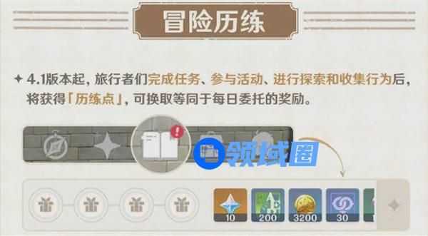 4.1版本起,旅行者们完成任务、参与活动、进行探索和收集行为后将获得[历练点],可换取等同于每日委托的奖励。