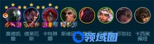 所需弈子:铁男、诺手、卡特、乌雅、老司机、琪亚娜、莎米拉、蛇女