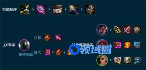 优先抢攻速装备,必备火炮和纳什之牙,剩下一件可以给法爆增加伤害,也可以给续航回复装备,其与装备诺手和卡特平分打副c,肉装给斯维因。