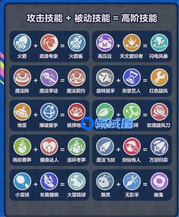 当蛋仔拥有特定攻击技能+被动技能组合的情况下,下一次技能升级会[质变]为高阶技能。