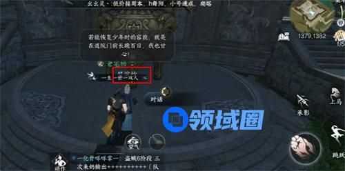 2.然后玩家们在前往抱朴道院内找到NPC梦滨妙和他进行对话;