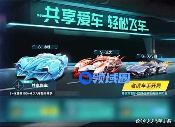 爱车分享季来袭!共享爱车活动限时开放~车手们可在排位赛个人竞速、排位赛组队竞速、排位赛组队道具的三人开黑房间(离开房间后不可参与)选择1辆已拥有的永久A车与房间内其他人进行共享,一起快乐飞车!