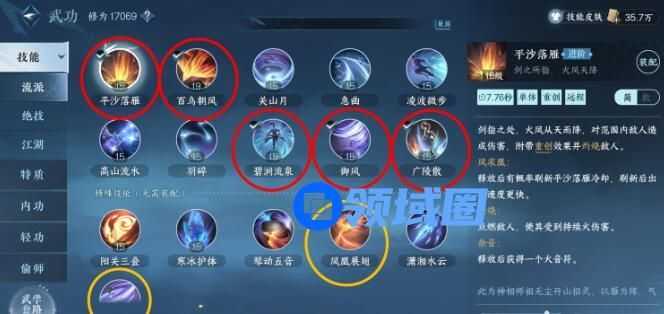 连招思路:打虎一式>凤凰展翅>御风>平沙落雁>百鸟朝凤>碧涧流泉一段>红莲焚夜>乾坤一掷>碧涧流泉二段