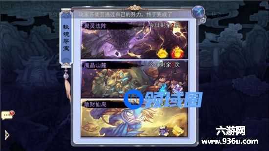 秘境寻宝分为三种:聚灵法阵。魔晶山麓。散财仙岛。