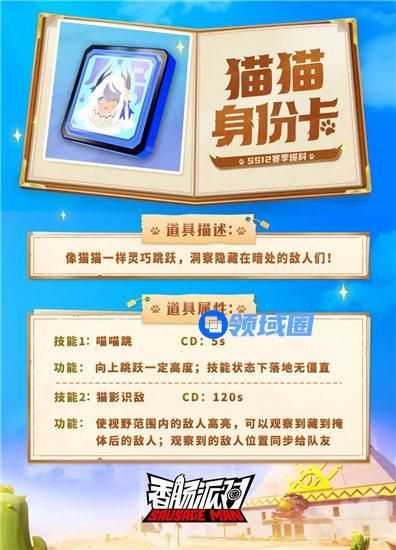 「猫猫身份卡」内含猫猫之力,可以帮助肠肠们拥有猫猫的灵巧和敏锐的观察力,能够在战场上取得先机~