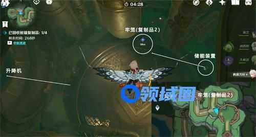 按指引路线走,前往牢笼位置,直接下落攻击,将储能装置放置于牢笼旁,打开牢笼,回收复制品2,前往升降机方向。