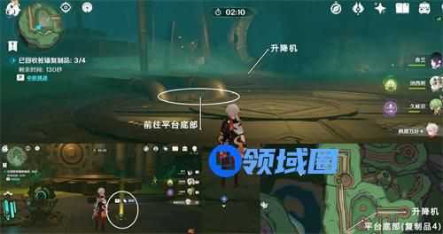按指引路线走,前往平台底部位置,在迁能终端旁,回收复制品4,返回平台上层,前往升降机方向。