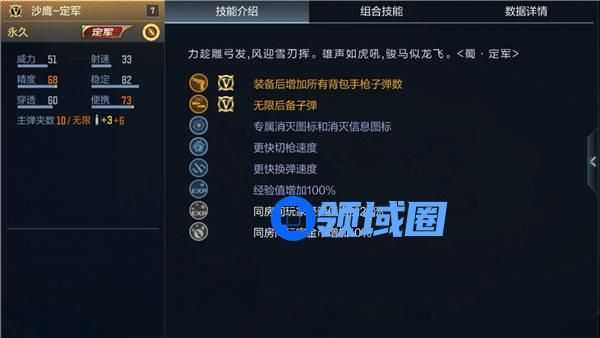除增加背包手枪子弹数外,沙鹰-定军还拥有“无限后备子弹”技能,这与沙鹰-飞电相同。该技能可谓竞技大神的绝配,持有沙鹰-定军,完全不必担心备弹量问题,连续击杀多人依旧满血续航,在个人战中优势尤为显著。更重要的是,这一技能也非常适用于生化、挑战等续航要求较高的模式,当主武器子弹用尽或持狙击枪作为主武器时,副武器将成为关键时刻的有益补充,无限备弹给你满满的安全感!