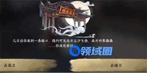 7、选择继续江湖路,第一个路口选择向南方,遭遇高手选择暂且不动,第二个路口选择去东北,对战220体魄的大师兄,成功后对战280体魄大师兄,失败后获得成就【命绝黑森林】。