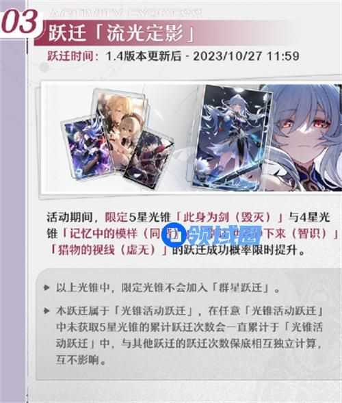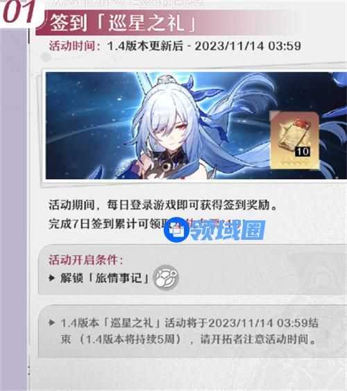 1.4版本「巡星之礼」活动将于2023/11/14 03:59结束(1.4版本将持续5周),请开拓者注意活动时间。