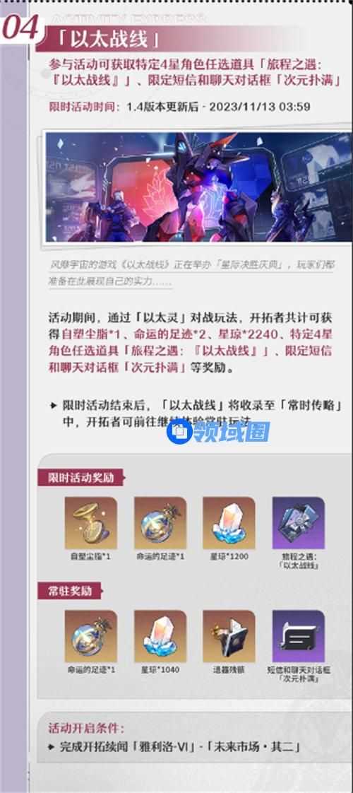 AΟTΜΠΥ ΕΥDΕOO参与活动可获取特定4星角色任选道具「旅程之遇:『以太战线』」、限定短信和聊天对话框「次元扑满」