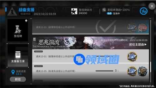 而通过刷这次的主线,完成相关的任务,可以额外解锁一些资源,其中包括急理智加强剂、应急理智浓缩液、里程碑碎片等,注意这次的理智药是有时间限定的,过期时间为:11月06日03:59,差不多一个月左右的时间吧,理论上可以涵盖到今年的半周年庆活动。