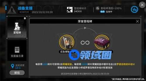 剩下的就是通过对应的关卡,可以解锁相关的主题“迷城”、养成素材、龙门币等资源。而说了半天所谓的里程碑碎片,凑1000个可以获得特殊的道具,包括应急理智液小样或罗德岛物资补给VI,凑1W个可以额外拿一份。
