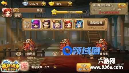 同福客栈开业了,但是没钱买菜了怎么办?不用担心!开启客栈抢夺模式,直接从别家客栈抢夺原料或者成品,再也不用担心完不成订单得罪客人了。如果有别人抢了你客栈的东西,还可以点击复仇按钮去抢回来,让大家体验到客栈经营的乐趣。而客栈升级后还会给所有上阵的武将带来属性加成,让你的整体战斗力更高!
