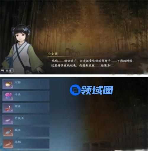 3、与小女子进行对话交谈,把小女子需求的鱼出示给她。