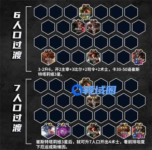 在崔斯特与塔莉娅3星后,就可升7人口开出4术士羁绊,看前排坦度下厄运或斯维因。