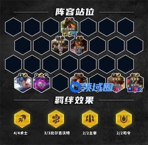 这套阵容主要玩的就是术士棋子崔斯特与塔莉娅。术士棋子能多重施法,特别是4术下,输出强度会得到极大提升。