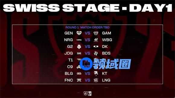 目前,瑞士轮第一轮的比赛抽签结果已经公布,其中,来自 LPL 赛区的一号种子 JDG 将对阵一路从资格赛、入围赛杀出来的 LEC 四号种子 BDS;二号种子 BLG 对阵 LCK 三号种子 KT;三号种子 LNG 将对阵 LEC 二号种子 FNC;四号种子 WBG 对阵 LCS 一号种子 NRG。下面是具体的对阵名单:
