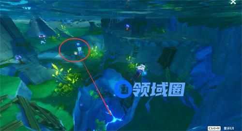 1.来到枫丹动能工程科学研究院区的图示水下区域,借助水母的力量炸开这块石头。