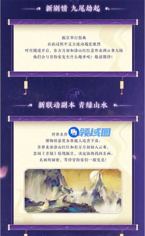新剧情九尾劫起,新联动副本青绿山水,新活动“初入云垂”,新种族狐族,还有绝美典藏时装“灵狐饮月”、免费联动时装……狐妖小红娘联动即将在10月19日正式开启,更多内容等待冒险家们一起来体验!