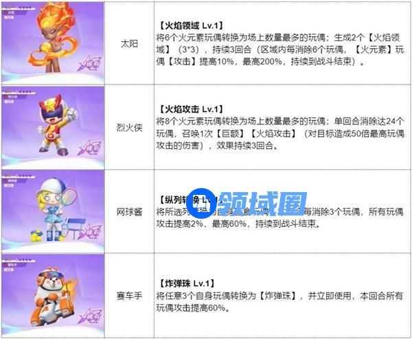 利用火焰领域的效果快速提升攻击属性,配合烈火侠进行持续输出,赛车手保证队伍的消除效率,网球酱负责清理麻烦的障碍物,具有优秀的稳定性和泛用性。