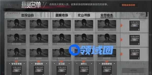 活动期间,农场、山谷、北部山区地图内的所有敌人身上将携带代表其身份的家族信物。横向或竖向悬赏图鉴全部激活时,可获得势力货币自选包奖励。